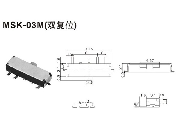 小撥動開關(guān)MSK-03M(雙復(fù)位).產(chǎn)品廣泛應(yīng)用于計算機周邊、多媒體音響、家電儀器、電子玩具、視聽設(shè)備、通訊設(shè)備等。