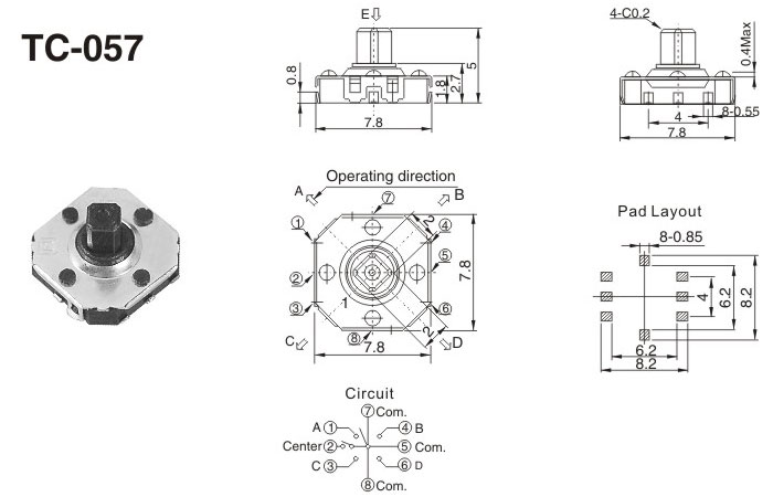 五項開關(guān)/TC-057本產(chǎn)品廣泛用于,玩具,電動玩具,玩具公仔,防盜器,家用電器,手機數(shù)碼,電子通訊,電子游戲機,汽車防盜,智能化系統(tǒng),電視機、MP3、耳機,等電腦通訊器材
